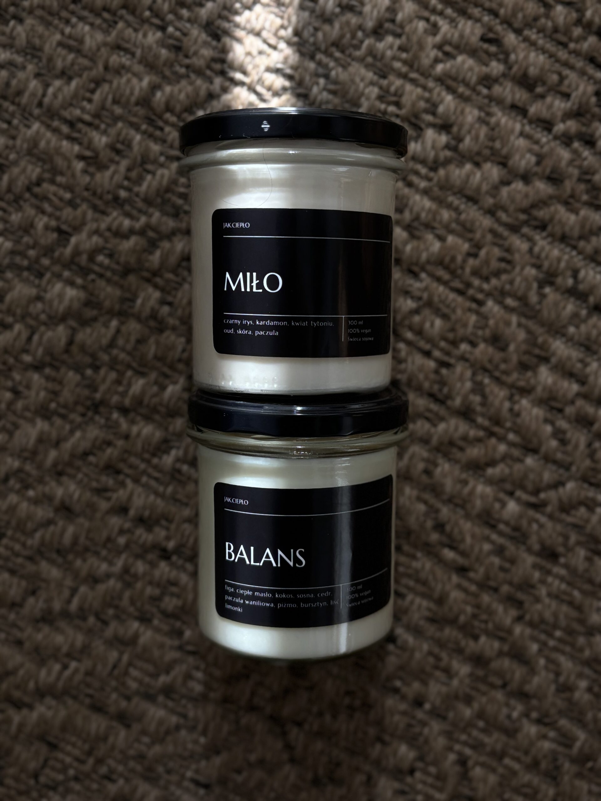 Produkty JAK.CIEPŁO, są w 100% wegańskie, wykonane z naturalnego wosku sojowego wolnego od GMO.