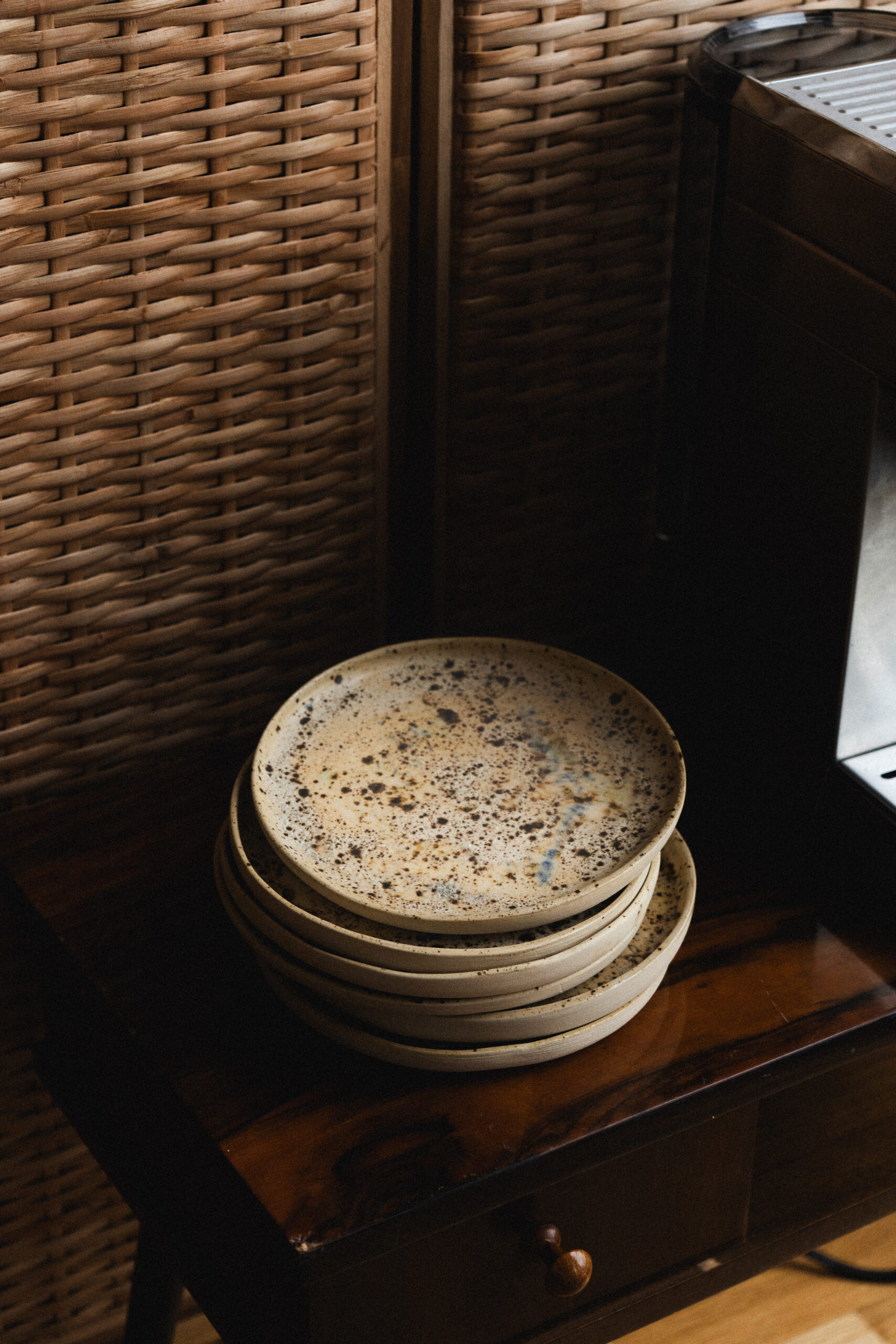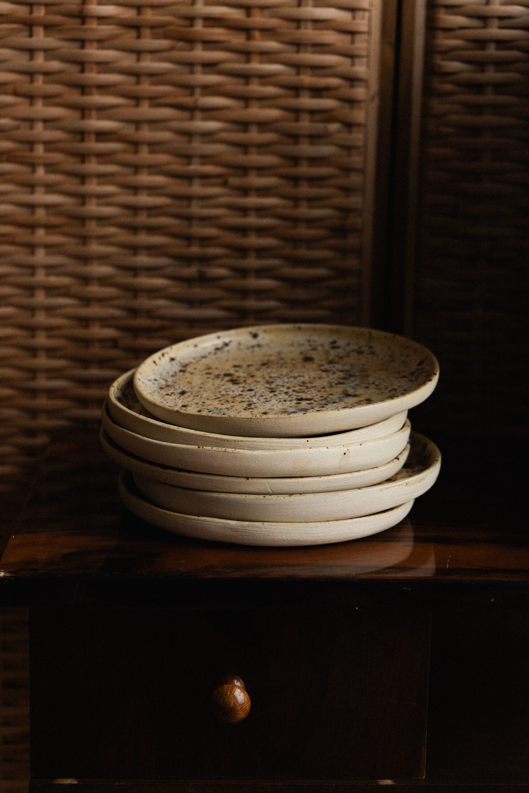 Talerze ręcznie wykonane, ozdobione wyjątkowym szkliwem. Każdy egzemplarz jest unikatowy, gdyż powstawał poprzez odręczne formowanie gliny. Przeznaczone do kontaktu z żywnością oraz wodą.