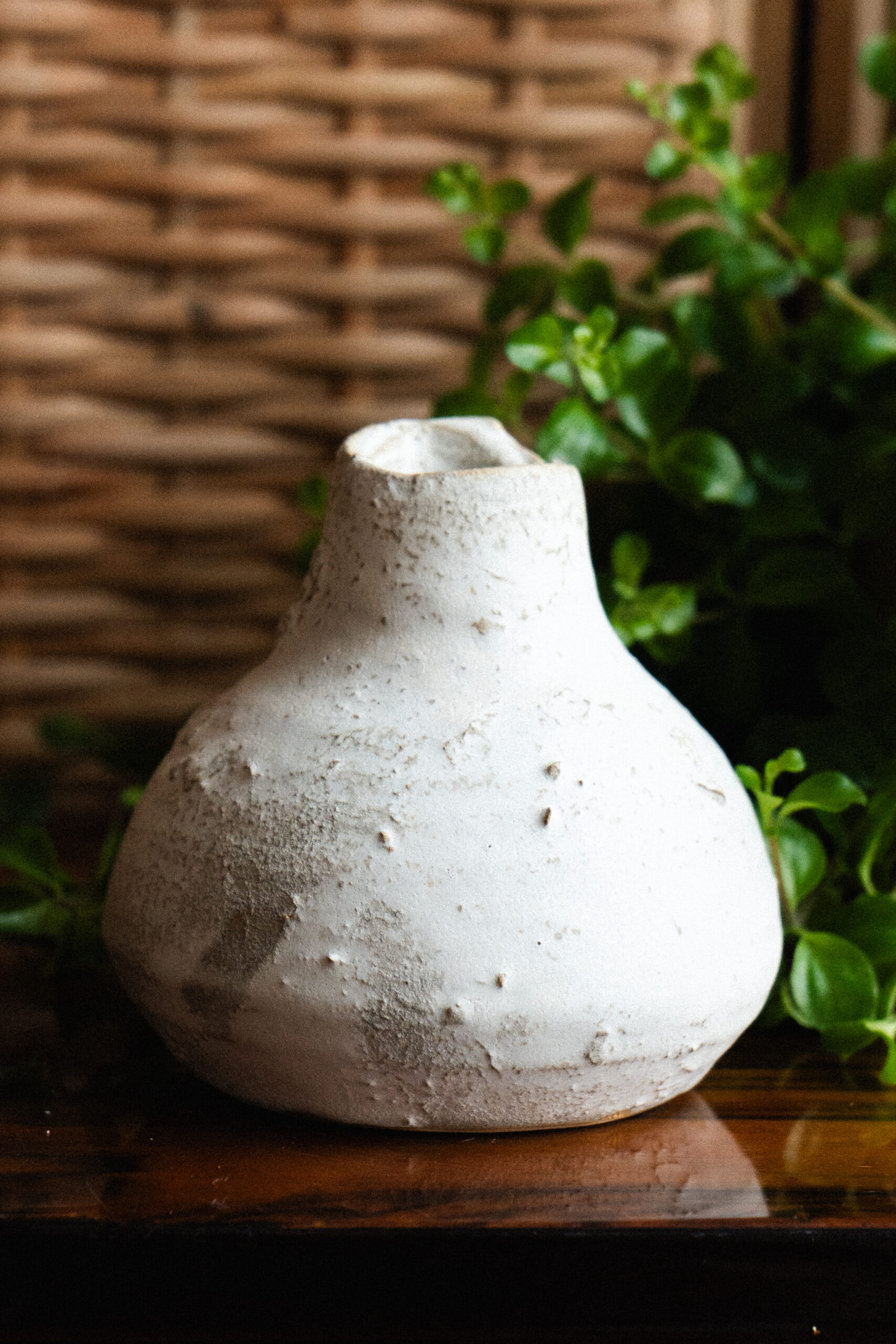 Ten ręcznie wykonany wazon to prawdziwe dzieło sztuki, które łączy naturalną teksturę z subtelną elegancją. Każdy szczegół, ręcznie rzeźbiony, tworzy unikalny wzór, który nadaje charakter każdemu wnętrzu, podkreślając piękno gliny i prawdziwą pracę rzemieślniczą. Przeznaczony na suche kompozycje kwiatowe.